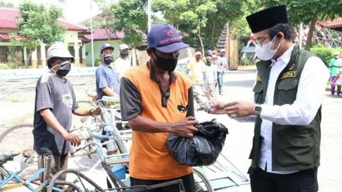 Sspontan meminta ajudannya menghentikan mobil dinasnya, dan berjalan kaki menghampiri dan bagi-bagi uang kepada tukang becak.