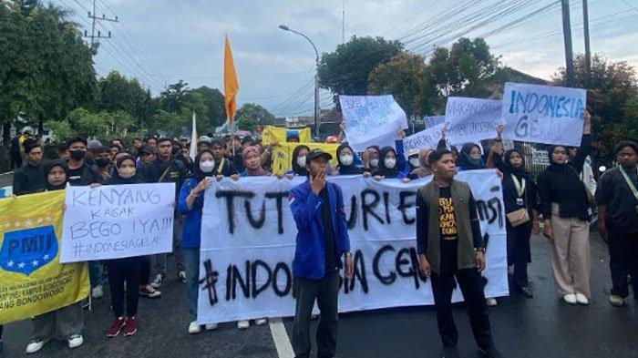Puluhan Mahasiswa Universitas Islam Jember (UIJ) menggelar demo saat pelantikan rektor baru, Senin (22/5/2023) siang.