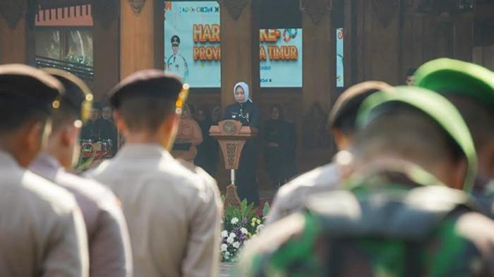 Wali Kota Mojokerto, Ika Puspitasari (Ning Ita), memimpin upacara dalam rangka memperingati Hari Jadi Jawa Timur ke-80.