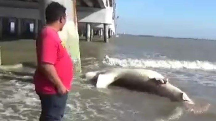 Masyarakat nelayan di pesisir Desa Sukolilo Barat, Kecamatan Labang Bangkalan dikagetkan dengan bangkai tiga ekor hiu paus, Senin (17/7/2023) sore