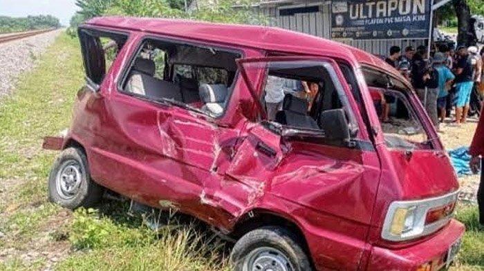 Tersangkut di Perlintasan Caruban-Babadan, Mobil Suzuki Remuk Dihantam KA Argo Semeru