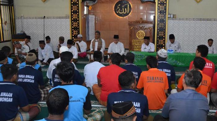 Seluruh warga binaan dan petugas Lapas menggelar doa bersama d di masjid Al-Muttaqin Lapas Lamongan jawa Timur.