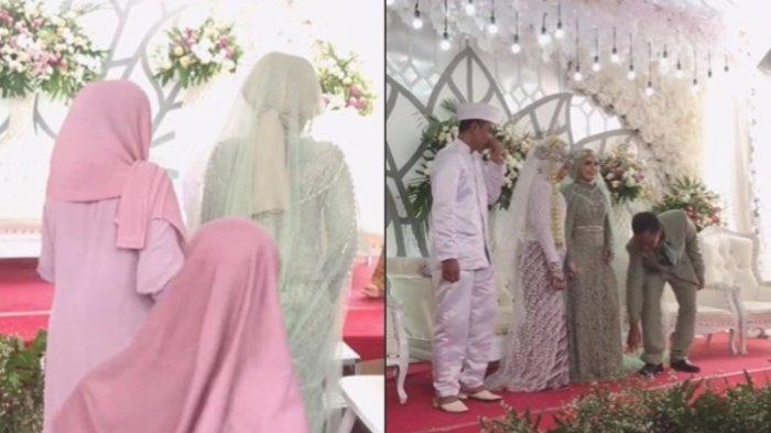 Begini momen langka tatkala seorang manten menghadiri acara pernikahan pengantin yang lain. Tamu yang hadir tak bisa menyembunyikan tawa.